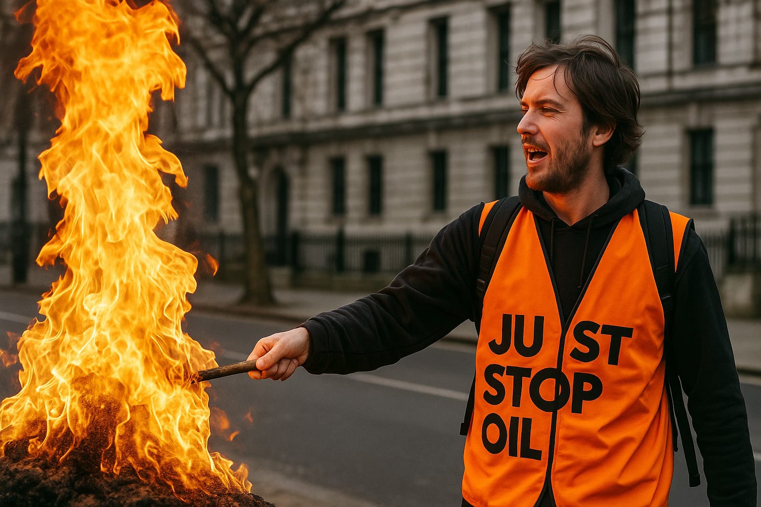 LONDON - In a bold new escalation of tactics, protest group Just Stop Oil has announced a new strategy: directly incinerating what little public sympathy remains for their cause.