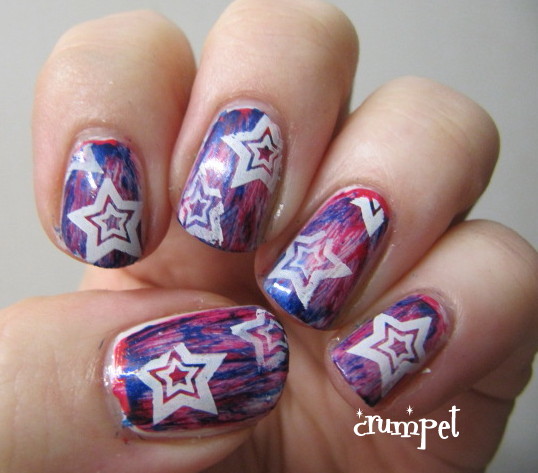 Once I did the secret jiggery pokery magicalooza, I then stamped over my nails using Konad white, and the star on BM06. It's the first time I've deliberately stamped off centre, and I really liked how it added to the overall effect.