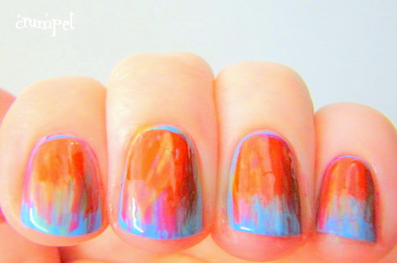 And that's how the parrot nails began - literally by experimenting and layering colours on top of each other (it was also the week I did the Acid Wash nails, so you know I was in a playful mood).