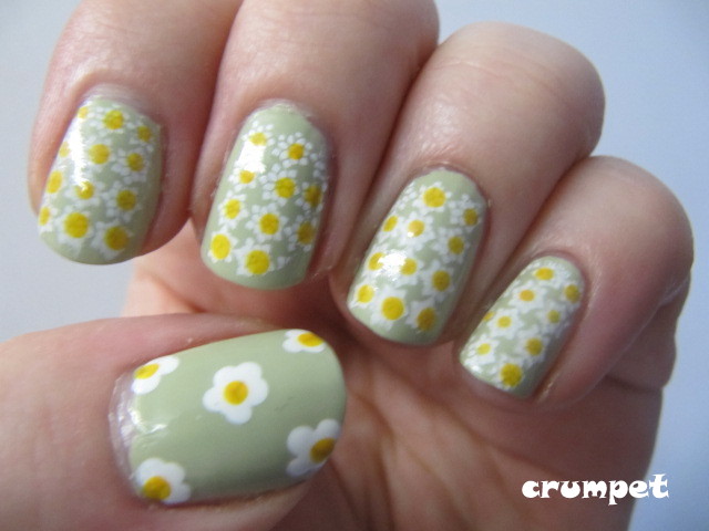 The perfect fugly colour, this is a yellowy baby poop green, laced with shimmer from the OPI Germany Collex. I loved it, and I've just about convinced myself I can keep it.