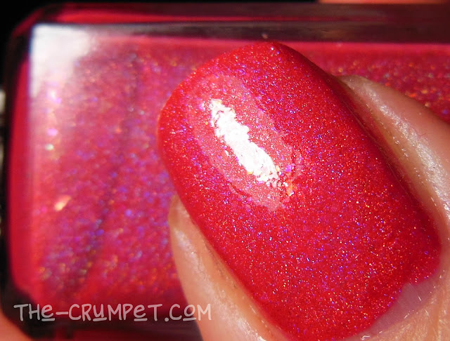 You've Got Red On You you've seen before, as the base of my Halloween Blood mani. It's an almost black polish with red and pink shimmer and glitter.