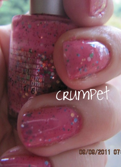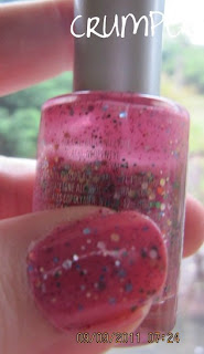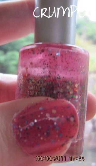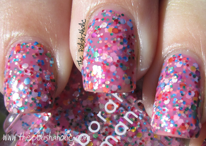 We have ended up with something girlie, pretty, cute and which just screams HAPPINESS.  It makes me smile just looking at it.  So we have a semi-opaque bubblegum pink with 2 types of glitter, which as you layer it creates a glitter sandwich.