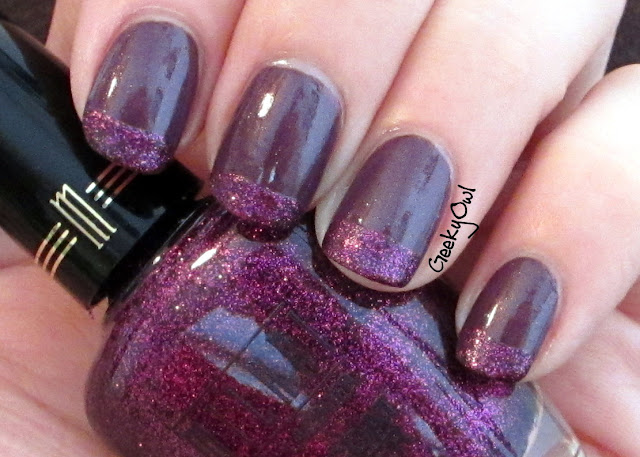 This is my serious purple mani for The Crumpet. I used OPI Dutch ‘Ya Just Love OPI, which is a gorgeous purple crème with orangey/red shimmer. I then did a funky french tip using Milani Purple Gleam. Purple Gleam is a gorgeous glitter jam packed with sparkles!