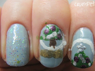 this features 5 nails, 4 of which feature the same snowglobe, taken from