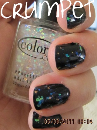 So, slightly disappointed. So I applied COLOR CLUB Covered In Diamonds as a top coat and ….. WOW. NOW I am in love, like seriously in love. In the bottle, CID is a shimmery white potion with opal flecks. On the nail, it initially looks clunky and disappointing, with jagged foil type flakes landing on the nail, but then … oh, but then, as it dries, it absorbs the colour underneath it, opalesces it and VOILA.