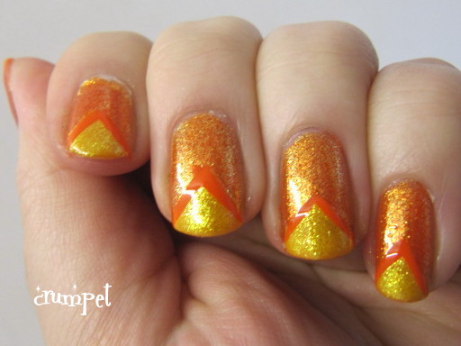 Sorry sorry sorry, not only is this post a day late, it's also my 2nd version of Summer Chevrons. Originally I chevroned over my parrot nails, but .. well, it just didn't look summery, so here we have something that's insanely sunshiney instead - you can't deny the summer credentials of this one !!